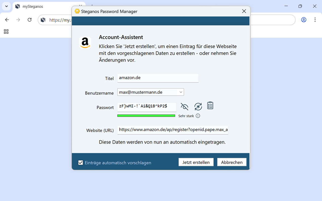 Die Steganos Passwort-Manager Browser-Plugins bieten komfortable Autofill- und Passwort-Generierungsfunktionen.Account-Assistent